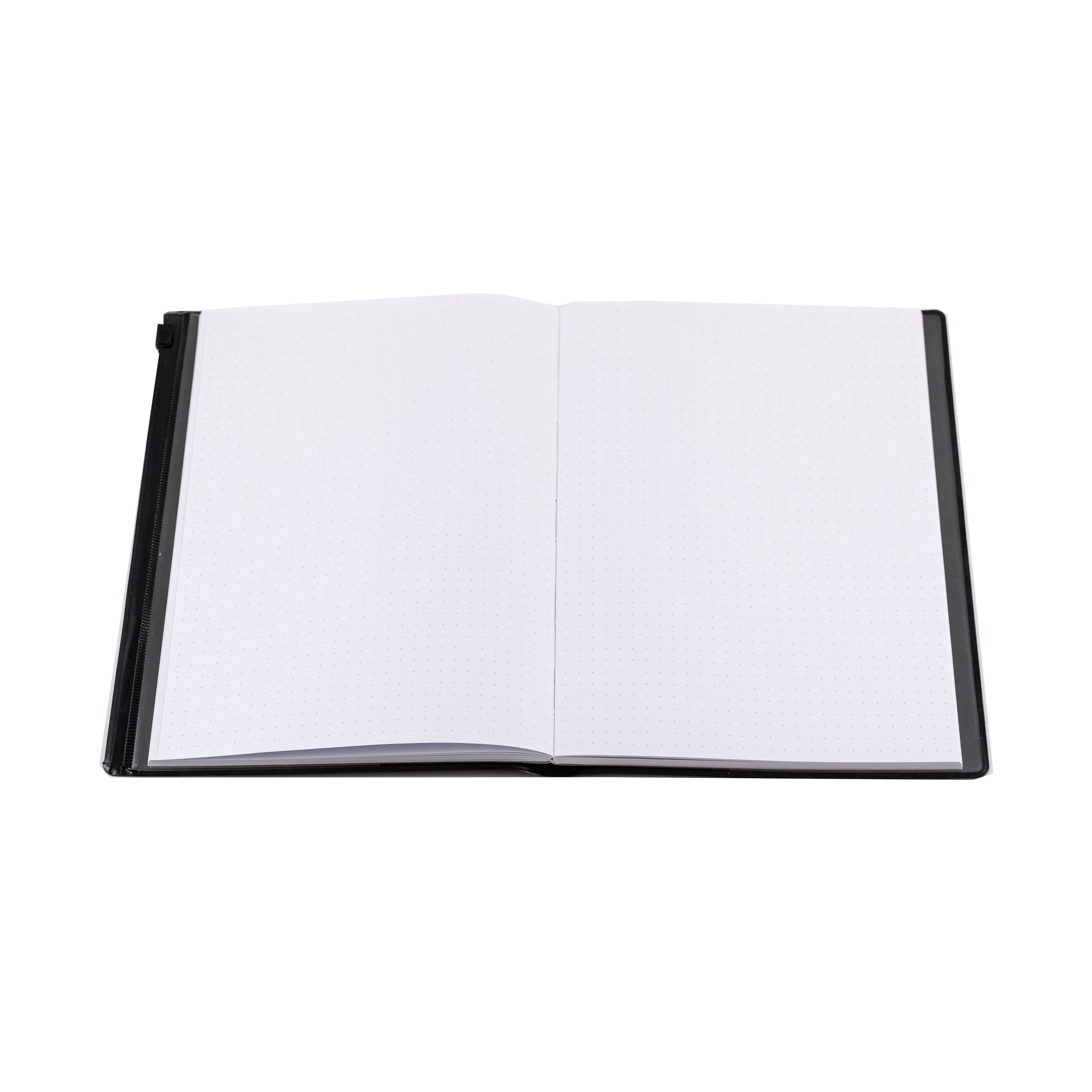 The new FRAMEWORK A5 Notebook! This highly functional notebook allows for quick-access storage or customising your own cover! With a zip lock plastic front cover, this notebook is perfect for storing important documents whilst on the move.